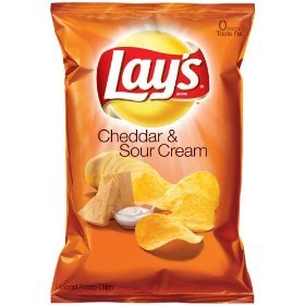 Happiness in Every Bite. LAYS Cheddar Sour Cream Flavored Potato Chips. These chips which are described by Lays as cheesy savory crispy and delicious are available exclusively in-store at Sams Clubs.
