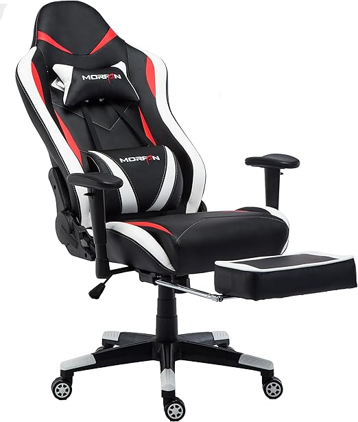 Amazon Com Morfan Swivel Gaming Chair Normal Size Pu Leather Racing Style Office Chair With Lumbar Massager Support And Retractable Footrest Black Red White Furniture Decor