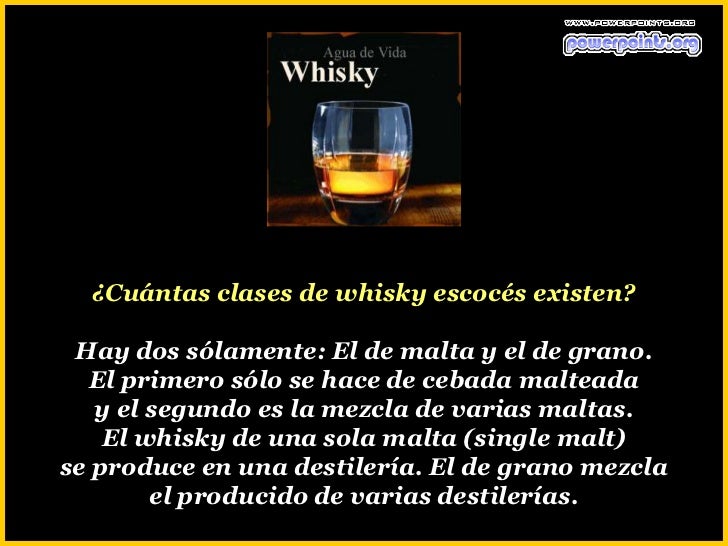 Los cereales principales que demuestran de que está hecho el whisky son. Es un whisky procesado en una sola destilería de agua y cebada malteada sin la adición de ningún otro cereal y hecho por lotes en alambiques de olla. Qué es el whisky.