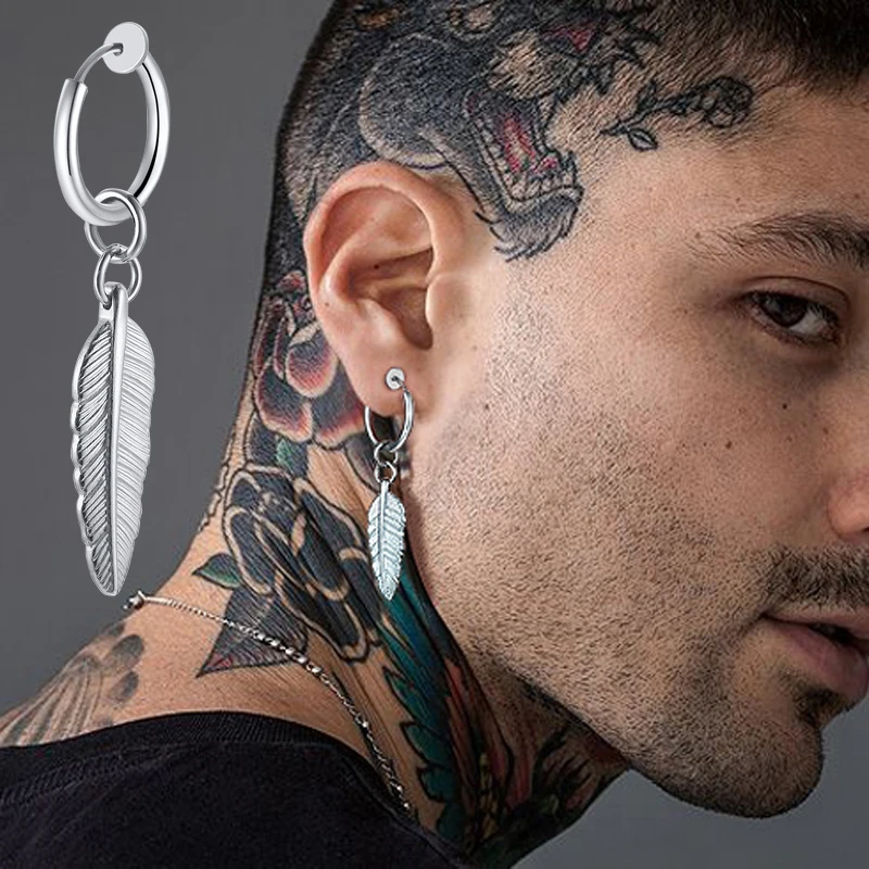 Single Feather Leaf Earring Best Men Earrings New Wave Guys Conch Hoop Piercing Without Piercing Male Jewelry Stud Earrings Aliexpress