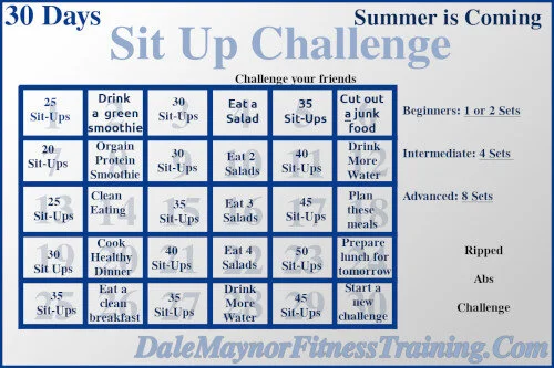 Sit Ups Challenge 30 Day Fitness Workout Challenge Sit Up Challenge