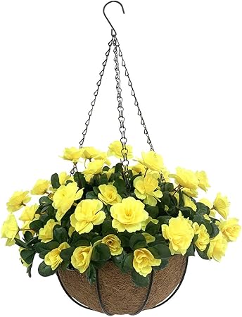 Hanging Basket With Artificial Yellow Petunias Artificial Hanging Baskets Hanging Plants Outdoor Hanging Flower Baskets