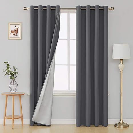 Amazon Com Deconovo Thermal Insulated Blackout Curtains With Silver Back Lining Window Light Blocking Panel Drapes For French Doors 52w X 84l Inch Dark Grey 2 Panels Kitchen Dining